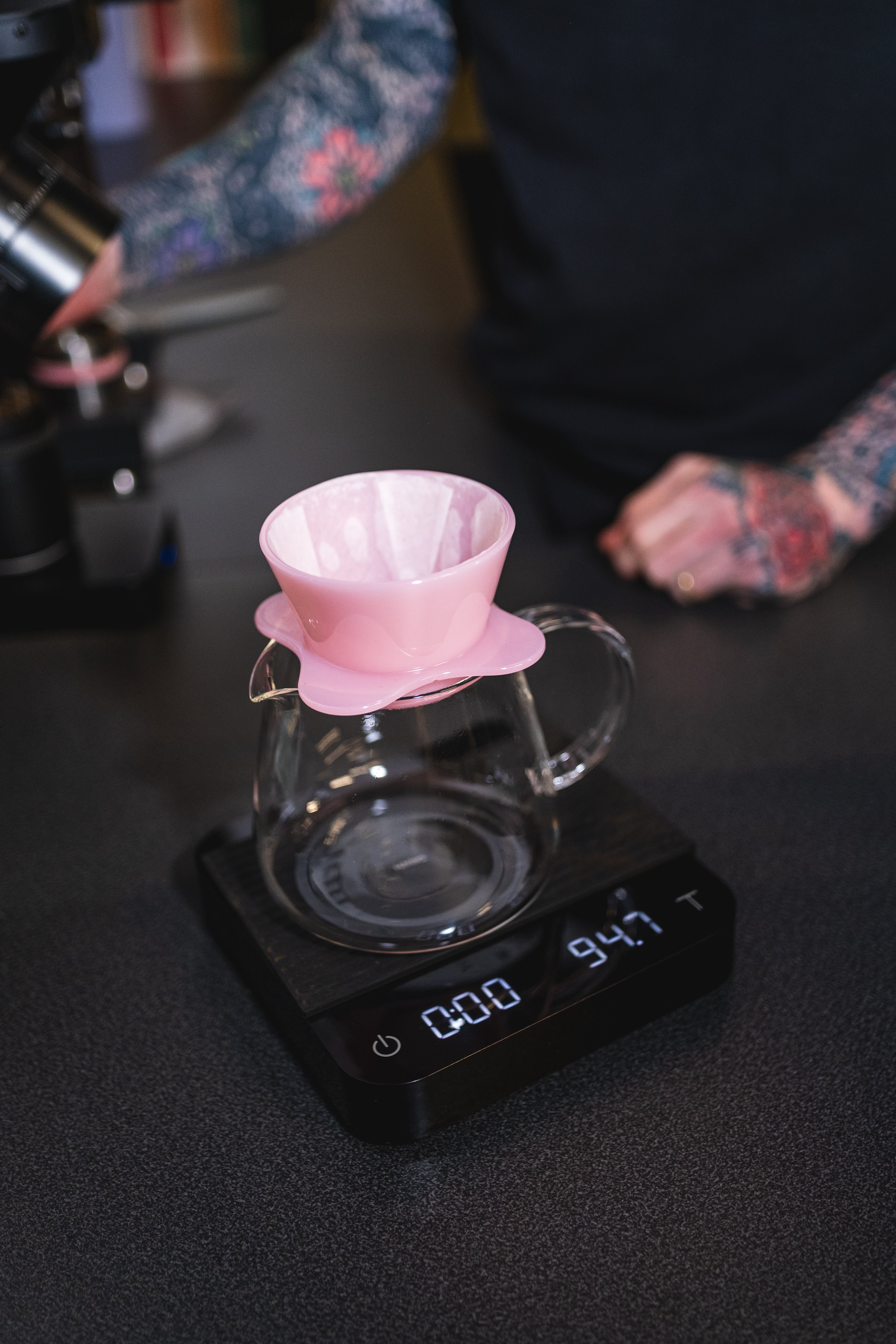 We haven't historically made many colours for our brewers, usually opting for black, transparent, or white. But we have a sweet spot for pink, and especially for this kind of pink. A creamy, sweet, floral pink - the kind that every coffee should taste like. We liked this so much that we kept it for ourselves, as one of our core colours. It's just got that special something that brings a little joy to every day - we fell in love and we hope you will too!